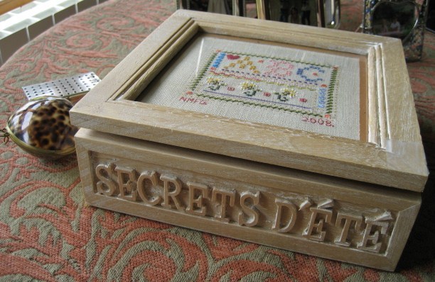 , y ha quedado realmente coqueta con la tapa bordada a punto de cruz.