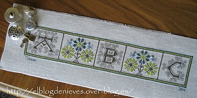 Este Diminutive Dutch Sampler es de la casa Barrick Sampler (Carriage House) fue muy entretenido de hacer pues mezcla punto de cruz con bordado a pespunte alrededor de las letras.