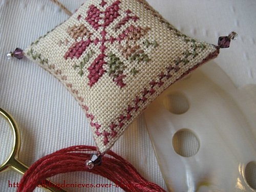 Una pequeña labor que siempre queda muy lucida, esta vez lo he hecho en colores verdes y granates matizados.