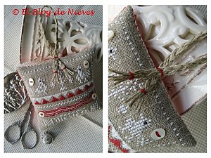 Me resulta muy relajante hacer este tipo de cosas que se me ocurren sobre la marcha. Elegir unos botones, telas, las cintas e imaginar como voy a hacer el lazo para colgar. Bordar unos motivos ligeros y coquetos mezclando punto de cruz y festones y ya está.