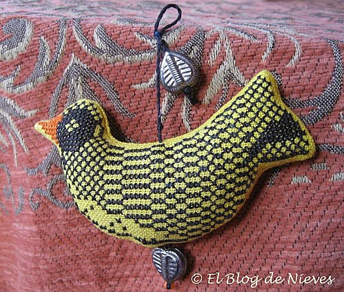 Este es un adorno llamado Snow Bird de la casa La~D~Da, es de hace varios años ya y el patrón me lo proporcionó una amiga.