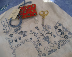 Poco a poco voy rellenado el lino de los clásicos motivos cuáqueros.