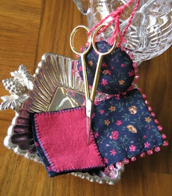 Con una tela estampada graciosa, fieltro y abalorios de forma facetada se pueden hacer pequeñas cosas como estas que dan color a la caja de costura que todas, en más o menos grado, tenemos en casa.