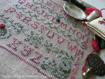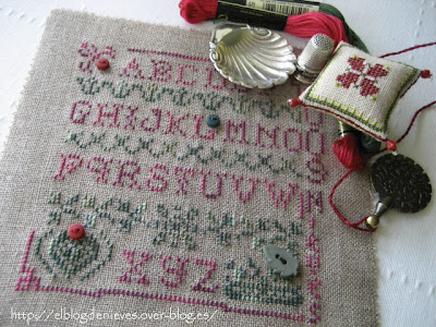 Hacer letras me gusta mucho. Cuando no se que hacer o estoy descansado de una labor mas densa, casi siempre hago un pequeño dechado que resulta sencillo, ligero de bordar y con algún detalle añadido como los charms que queda realmente gracioso.