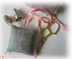 Son de un color rosa maravilloso que coordina con el fob que he hecho a juego con el último pinkeep. En cada esquina tiene un abalorio rosado, casi transparente, que enriquece esta pequeña labor.