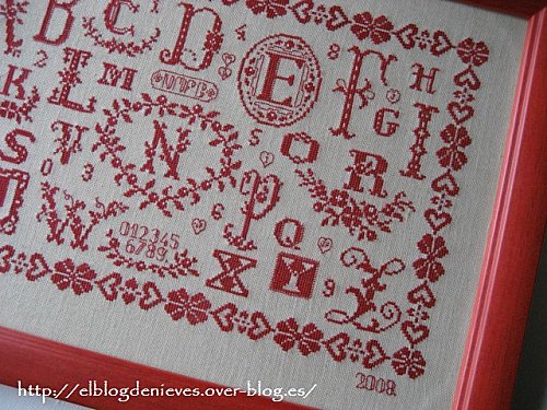 Este precioso sampler lo saqué de la desaparecida revista francesa De fil en aiguille en el nº llamado Hors Serie - TOUT ROUGE.