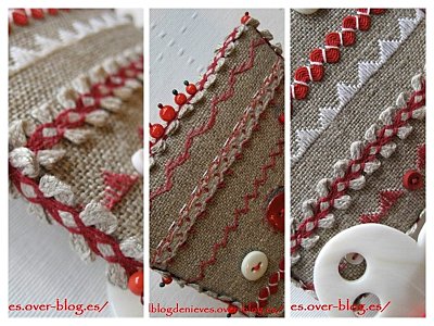 Hola Nieves. precioso y original. Esa tela rústica, y la combinación de tonos rojos, es fantástica. Un abrazo, Laura.