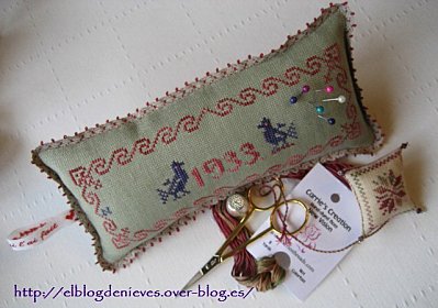 El Vintage Pincushion, del libro Joyeux Noël de Blackbird Designs, es un regalo que he hecho. El año es una fecha de aniversario.