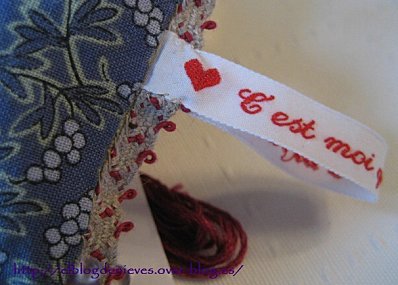 Es una labor sencilla y muy agradecida, los tonos verdes y azulados le dan un aspecto muy original y, como siempre, le he añadido mi "toque" con una cinta preciosa de Dechado y una de esas etiquetas muy Chic en francés.