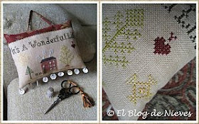 Te ha quedado preciosa esta almohadilla. Me encanta como consigues armonizar motivos y colores. Si que parece un adelanto navideño. ( y, que es un punto escapulario?)